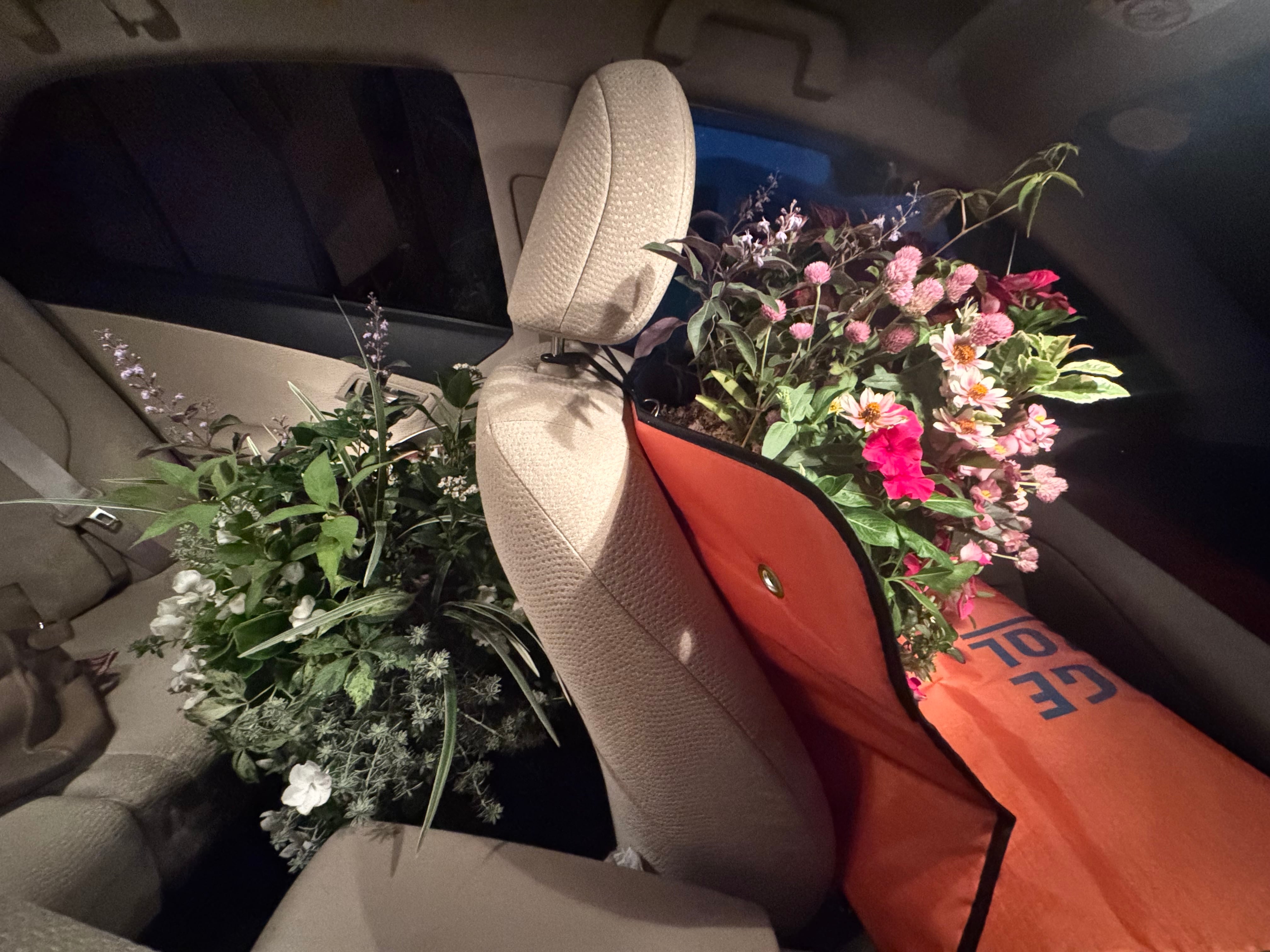 寄せ植えを作っている時と同じ状態でかけられるので、安心して運べます。